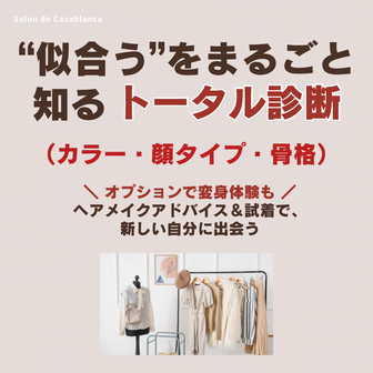 ・トータル診断(パーソナルカラーベストカラー診断、顔タイプ診断®、骨格診断)